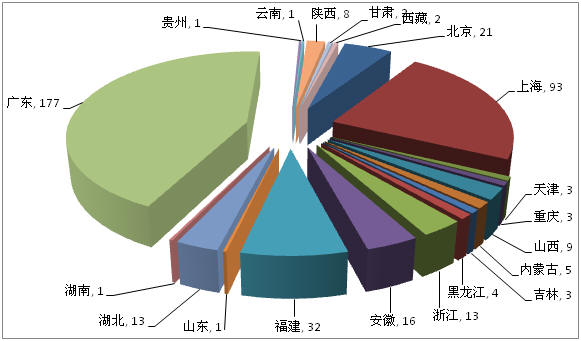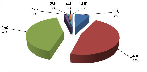 華東地區(qū):490家  華南地區(qū):553家  華北地區(qū):92家  華中地區(qū):22家