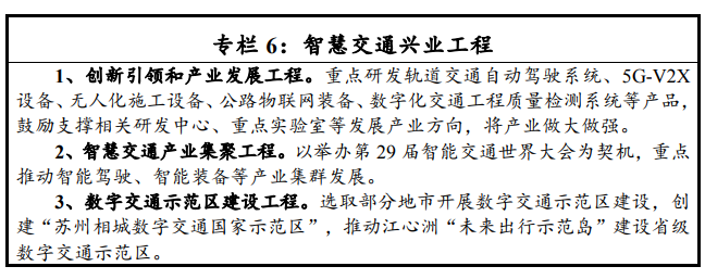 对照“打造全国领先的智慧交通产业高地”任务,提出智慧交通兴业工程。
